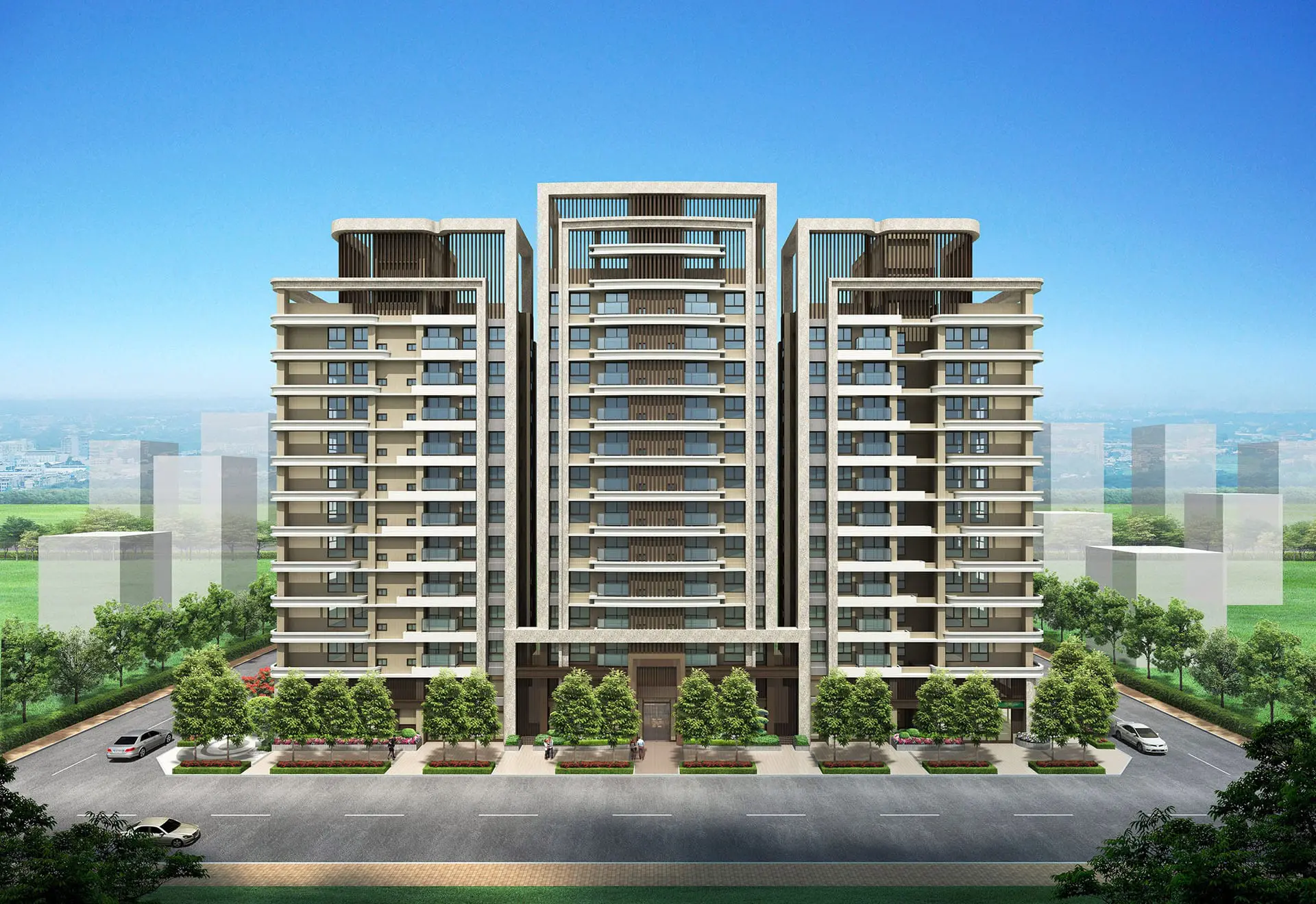 我們深知好的建築能讓生活更有味道,【京澄軒朗】坐落城市靜巷中,三面臨路、三幢建築、雙併純質規劃,寬幅開展的建築量體,以水平與垂直的視覺延伸、律動美學的曲線收邊、人文風格的格柵線條、清透明亮的玻璃陽台,營造新穎輕盈的建築新表情。