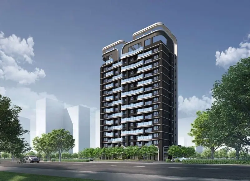 ▲「京澄為樂」三面臨路,以柔弧線形與錯層陽台交織建築之美。
